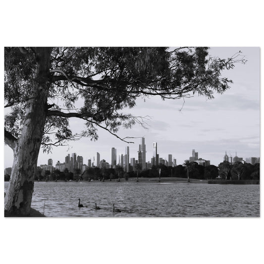 Melbourne skyline from Albert Park Lake (B&W) - Foam board