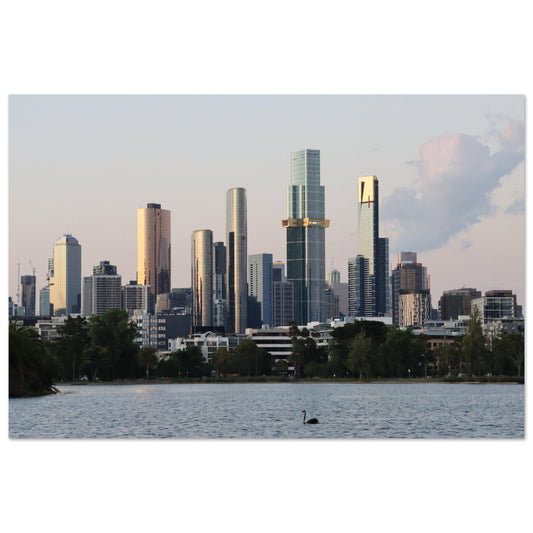 Melbourne skyline at dusk, Albert Park Lake - Foam board