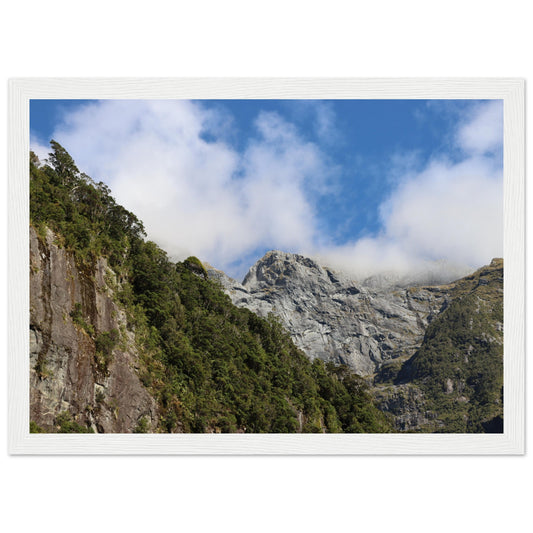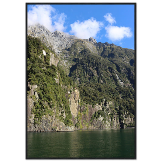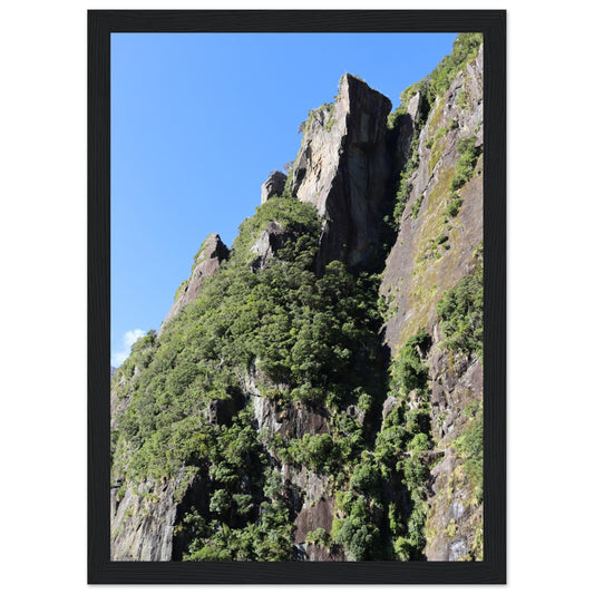 Milford Sound cliffs - Premium Matte Paper Wooden Framed Poster