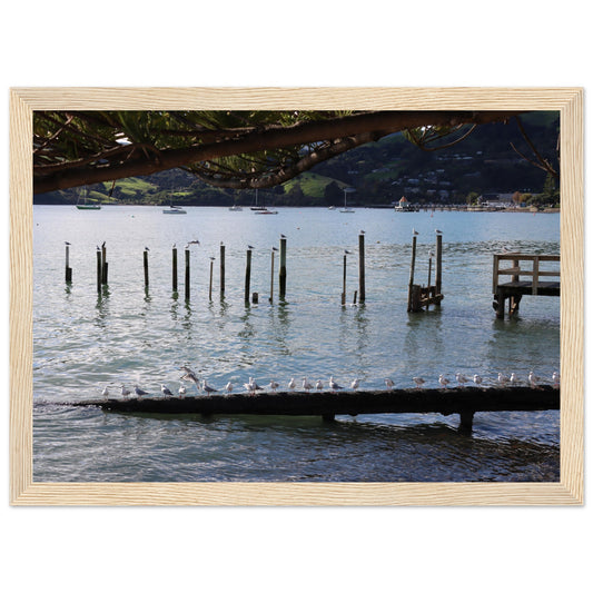 Row of seagulls, Akaroa - Premium Matte Paper Wooden Framed Poster