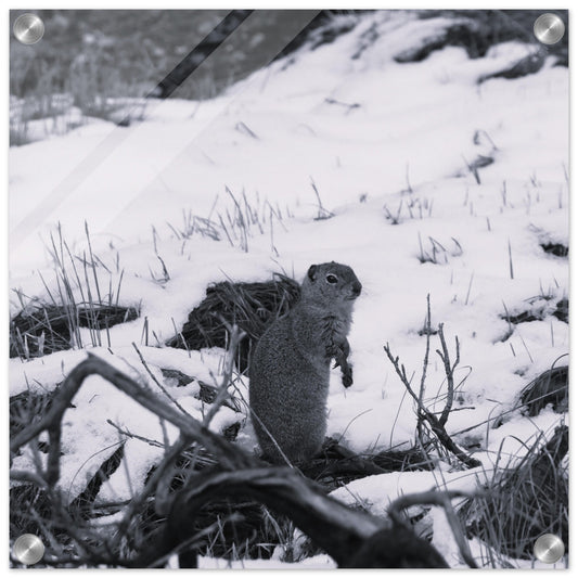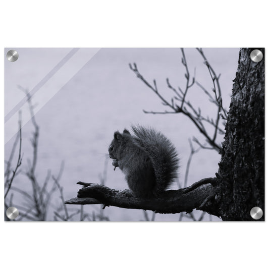 Squirrel on a branch, Grand Teton National Park (B&W) - Acrylic Print
