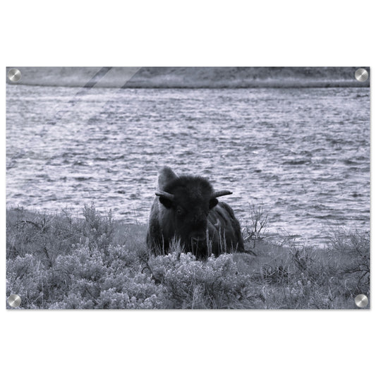 River flowing through Yellowstone National Park (B&W) - Acrylic Print