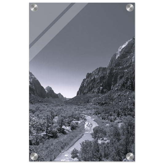 River flowing through Zion National Park (B&W) - Acrylic Print
