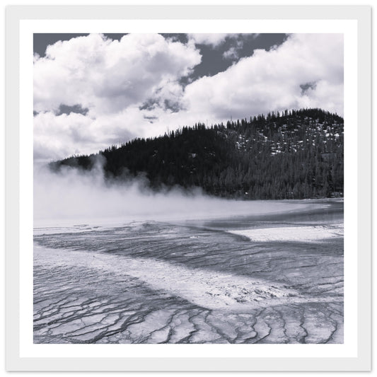Yellowstone National Park hot spring (B&W) - Premium Matte Paper Wooden Framed Poster
