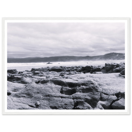 Great Ocean Road beach (B&W) - Premium Matte Paper Wooden Framed Poster