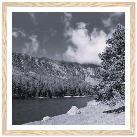 Grand Teton National Park, lakeside (B&W) - Premium Matte Paper Wooden Framed Poster