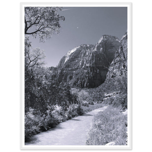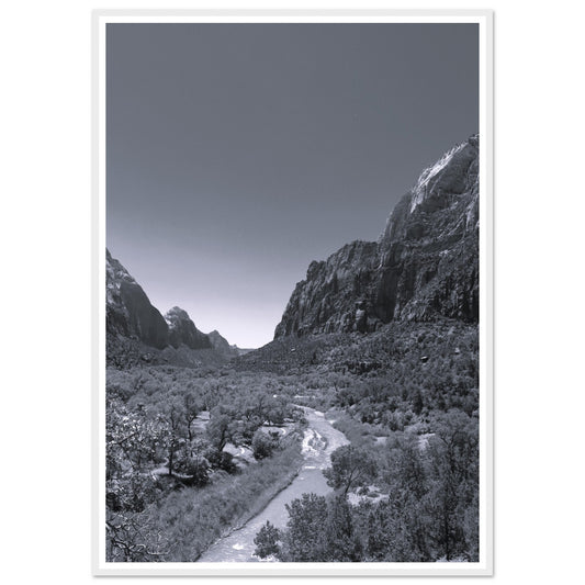 River flowing through Zion National Park (B&W) - Premium Matte Paper Wooden Framed Poster