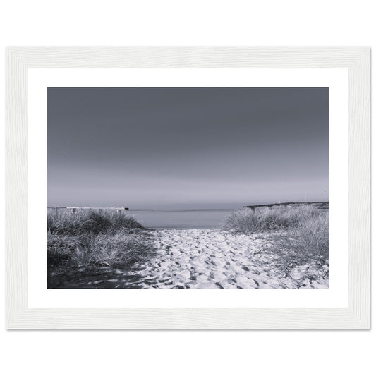 Port Melbourne beach (B&W) - Premium Matte Paper Wooden Framed Poster