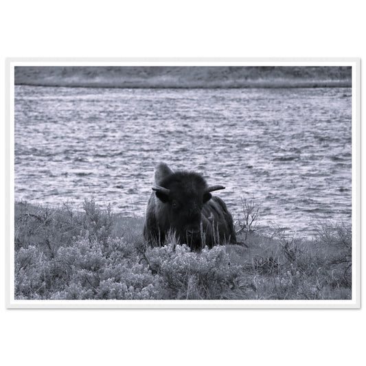 Bison by the water (B&W) - Premium Matte Paper Wooden Framed Poster