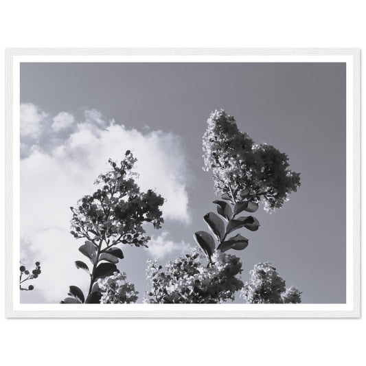 Crape myrtle in the sun (B&W) - Premium Matte Paper Wooden Framed Poster