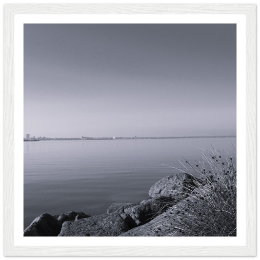 Morning waves (B&W) - Premium Matte Paper Wooden Framed Poster