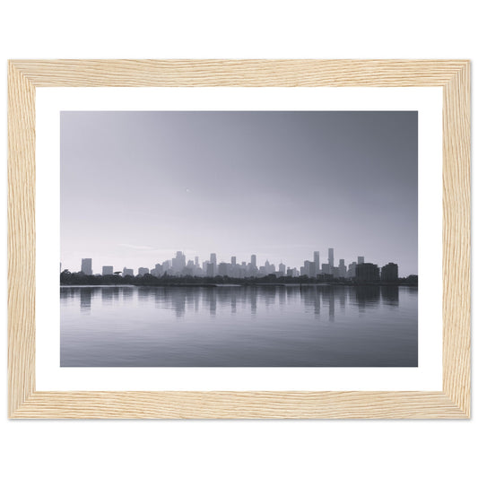 Melbourne skyscrapers by the water (B&W) - Premium Matte Paper Wooden Framed Poster