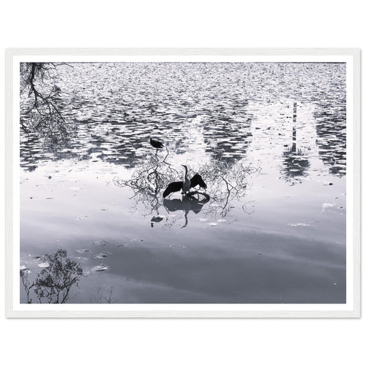 Bird in park lake (B&W) - Premium Matte Paper Wooden Framed Poster