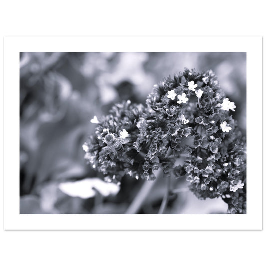 Foraging bee on summer flowers (B&W) - Premium Matte Paper Poster