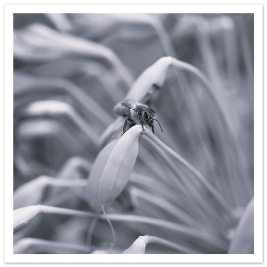Bee in summer garden (B&W) - Premium Matte Paper Poster
