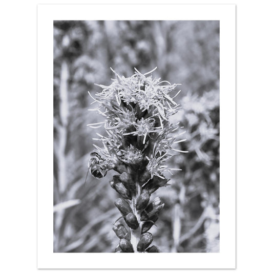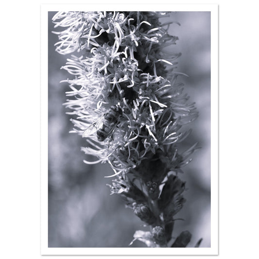 Foraging bee on liatris flower (B&W) - Premium Matte Paper Poster