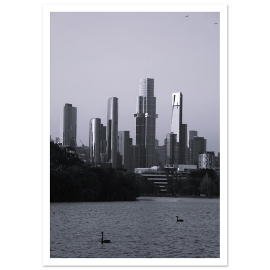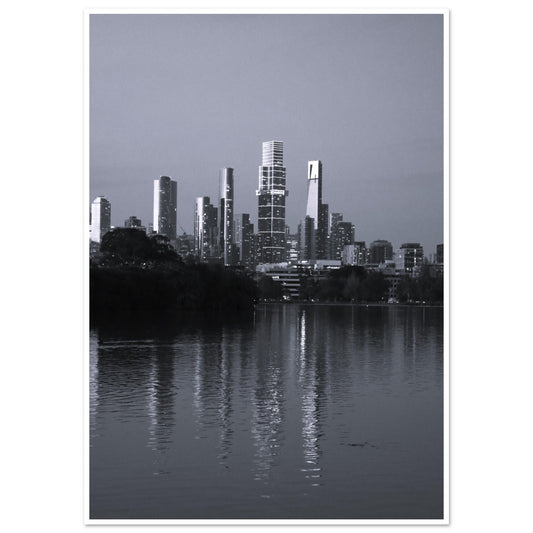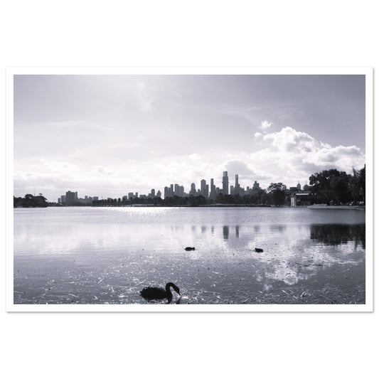 Melbourne skyline, Albert Park lake (B&W) - Premium Matte Paper Poster