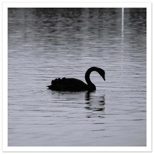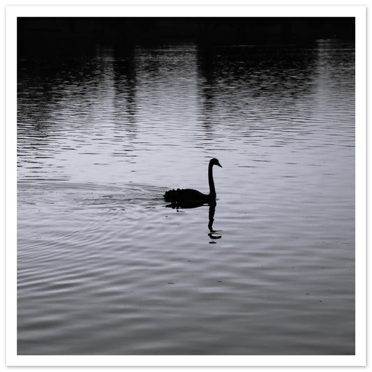 Black swan at dusk (B&W) - Premium Matte Paper Poster