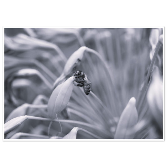 Bee on summer plants (B&W) - Premium Matte Paper Poster