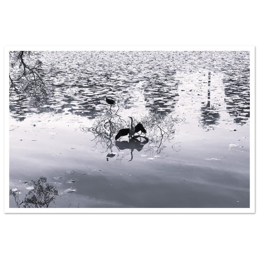 Bird in park lake (B&W) - Premium Matte Paper Poster