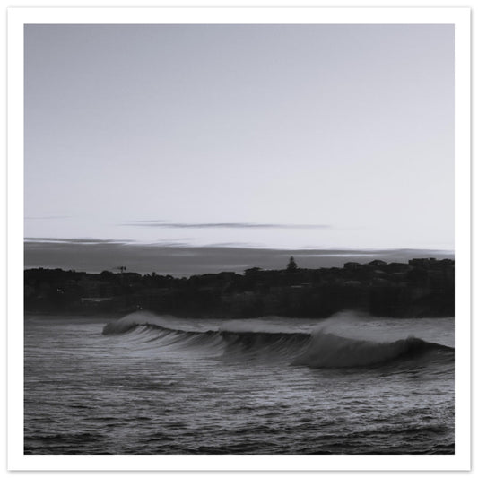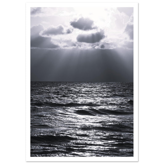 Sun setting over the ocean, Melbourne (B&W) - Premium Matte Paper Poster