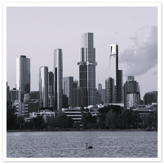Melbourne skyscrapers by the water (B&W) - Premium Matte Paper Poster