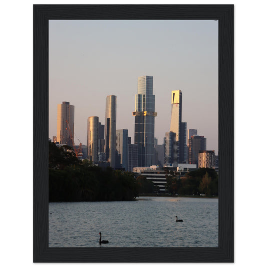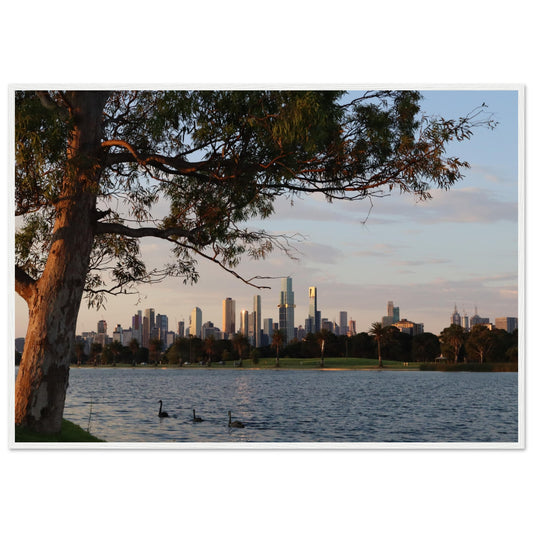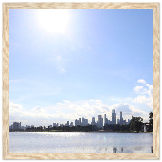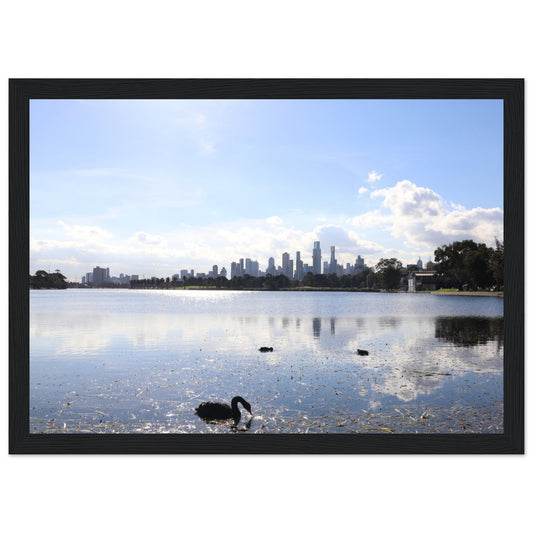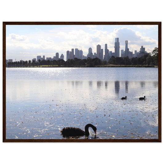 Melbourne skyline from Albert Park Lake - Premium Matte Paper Wooden Framed Poster