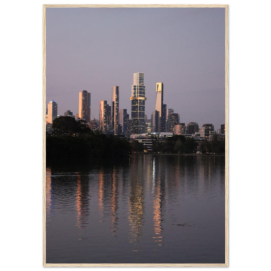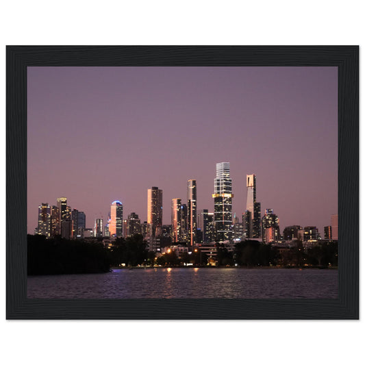 Melbourne skyscrapers at dusk - Premium Matte Paper Wooden Framed Poster