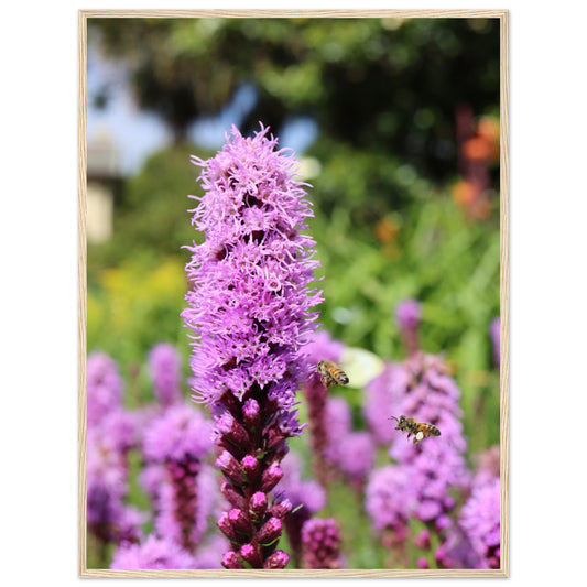 Foraging bees on spring liatris flowers - Premium Matte Paper Wooden Framed Poster