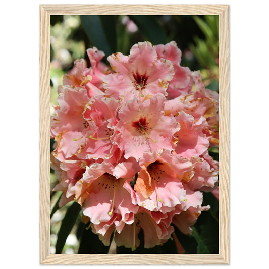 Pink ruffly rhododendrons - Premium Matte Paper Wooden Framed Poster
