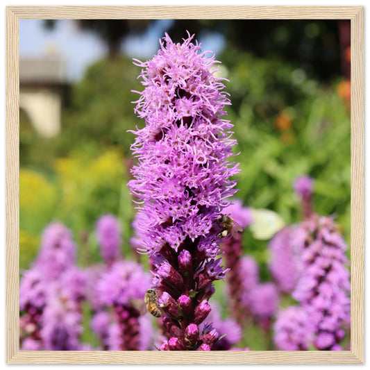 Foraging bees on liatris flowers - Premium Matte Paper Wooden Framed Poster