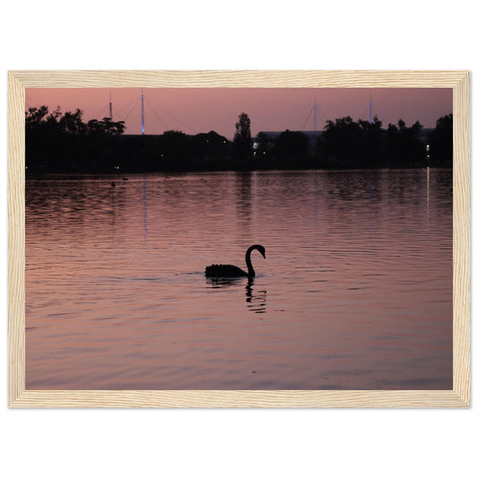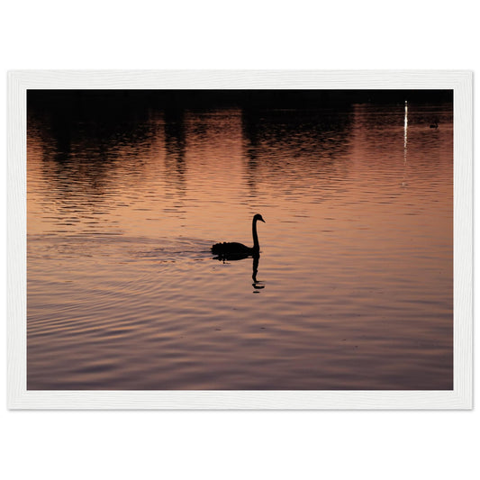 Black swan at sunset, Albert Park Lake - Premium Matte Paper Wooden Framed Poster