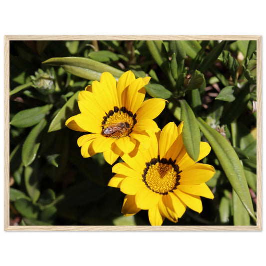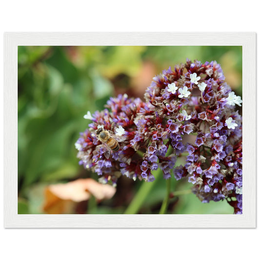 Foraging bee on summer flowers - Premium Matte Paper Wooden Framed Poster