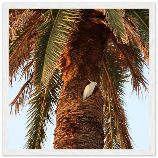 Cockatoo in palm tree - Premium Matte Paper Wooden Framed Poster
