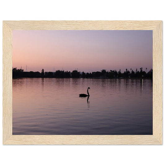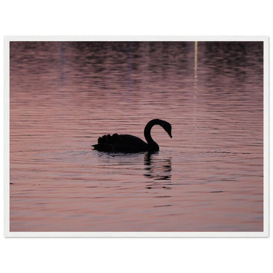 Black swan at dusk - Premium Matte Paper Wooden Framed Poster