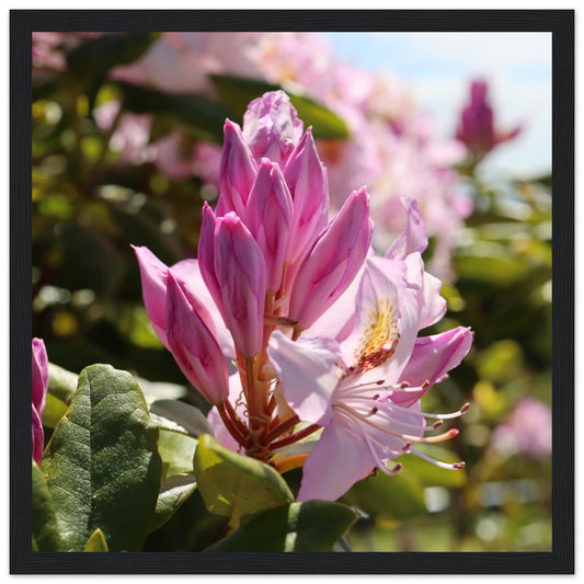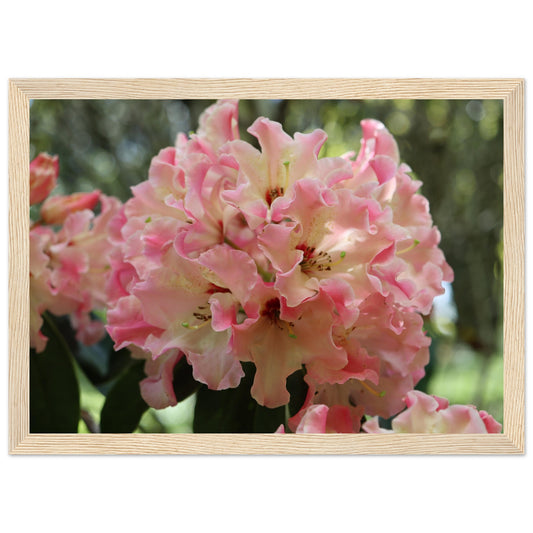 Pink ruffly rhododendrons in bloom - Premium Matte Paper Wooden Framed Poster