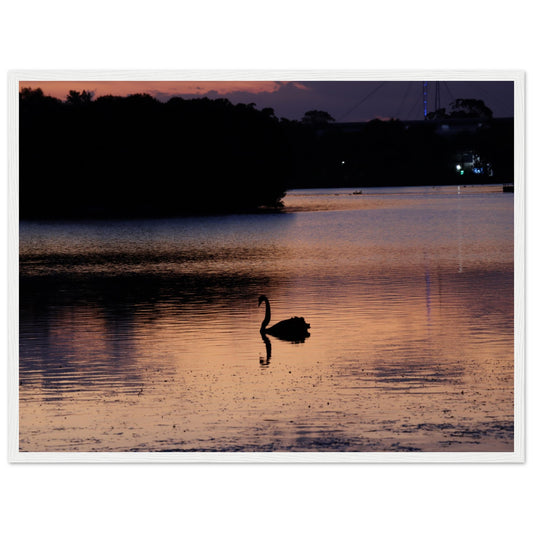 Black swan at sunset - Premium Matte Paper Wooden Framed Poster