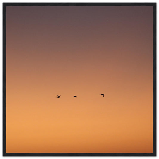Birds flying into the sunset - Premium Matte Paper Wooden Framed Poster