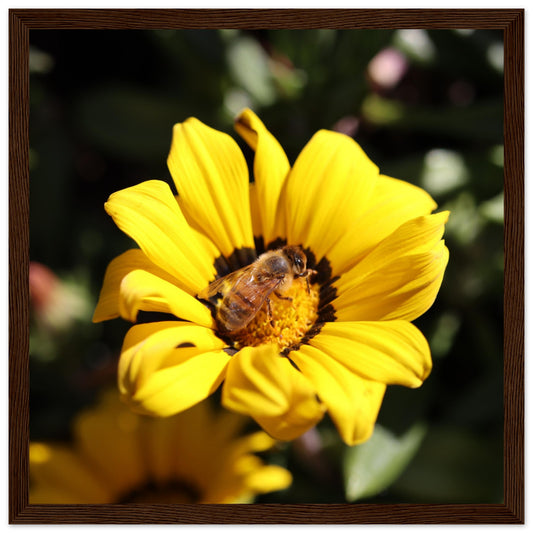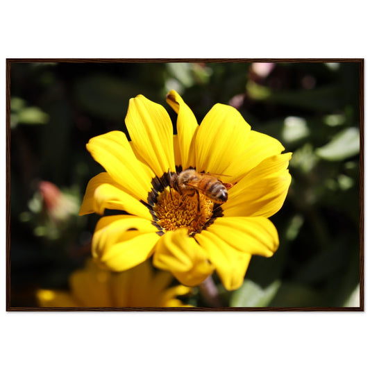 Bee on yellow flower in bloom - Premium Matte Paper Wooden Framed Poster