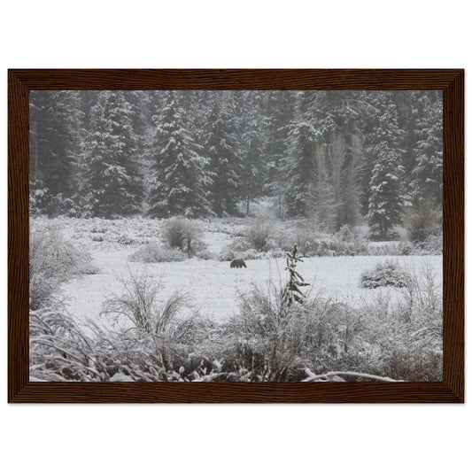 Grizzly bear on snowy day - Premium Matte Paper Wooden Framed Poster