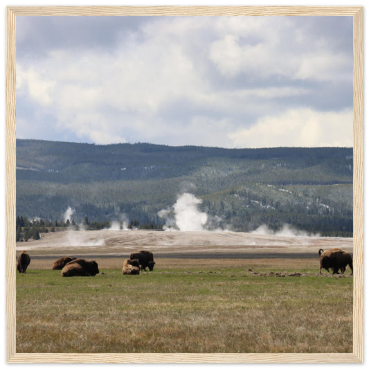 Yellowstone National Park bisons - Premium Matte Paper Wooden Framed Poster
