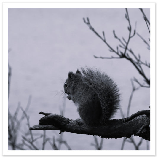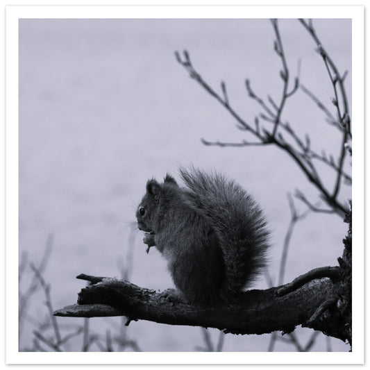 Squirrel on a branch (B&W) - Premium Matte Paper Poster