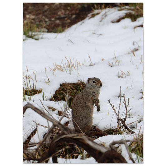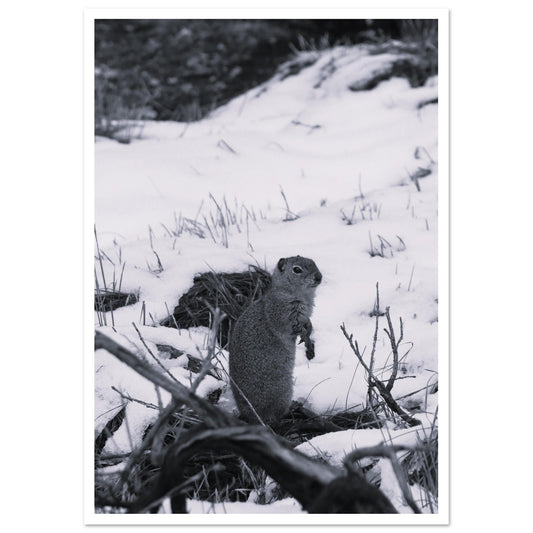 Squirrel in the snow (B&W) - Premium Matte Paper Poster