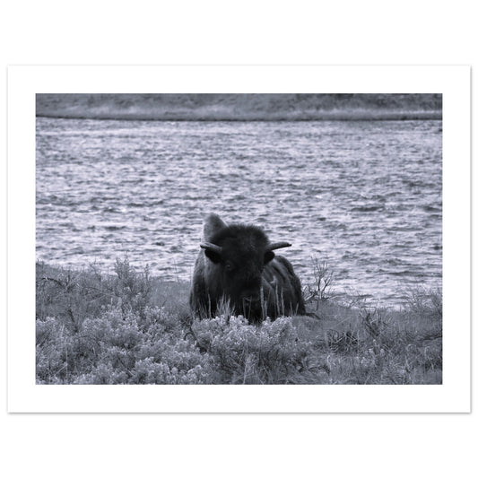 Bison by the water (B&W) - Premium Matte Paper Poster