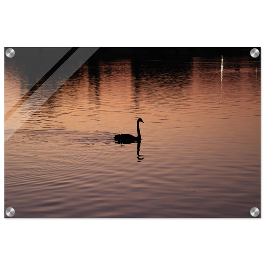 Black swan at sunset, Albert Park Lake - Acrylic Print