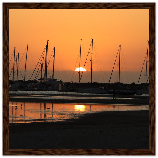 Sun setting over the marina - Premium Matte Paper Wooden Framed Poster