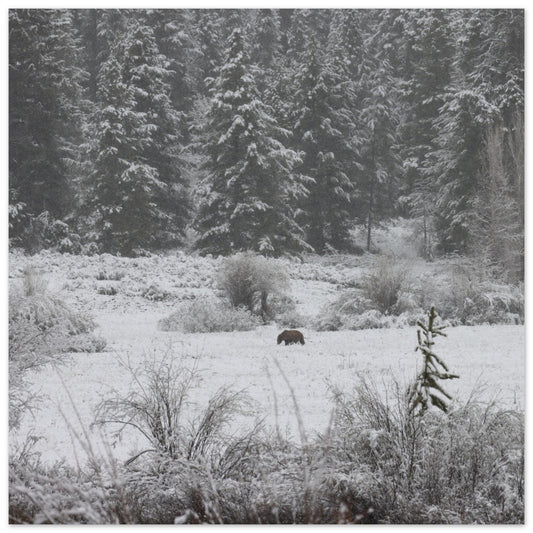 Grizzly bear on snowy day - Premium Matte Paper Poster