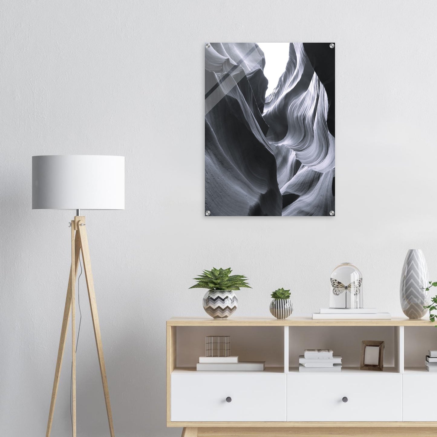 Antelope Canyon - Black & White - Acrylic print (lightweight, shatterproof, and temperature-resistant, making them easy to mount on your walls.)