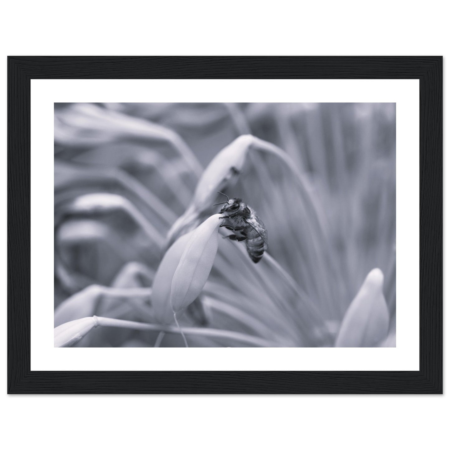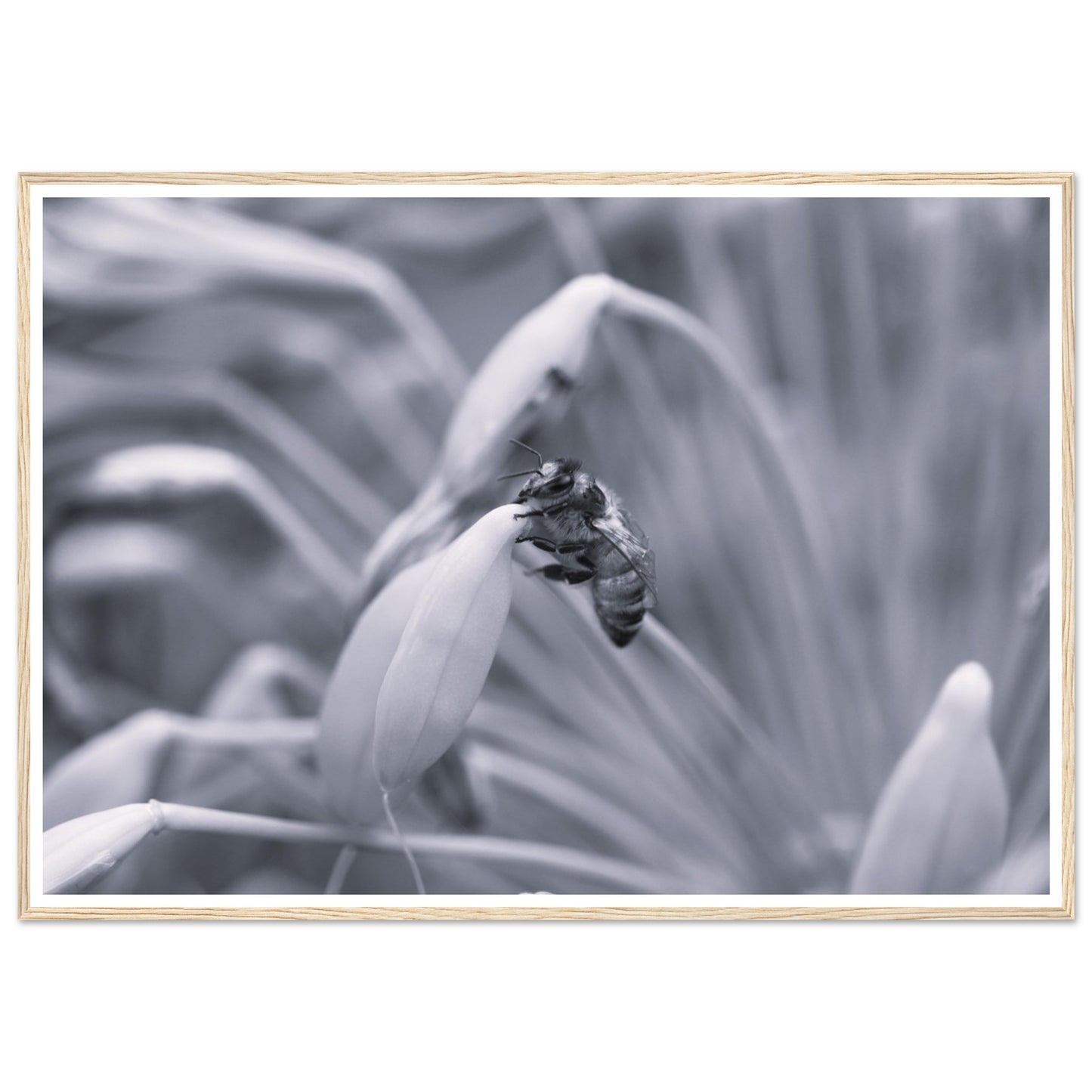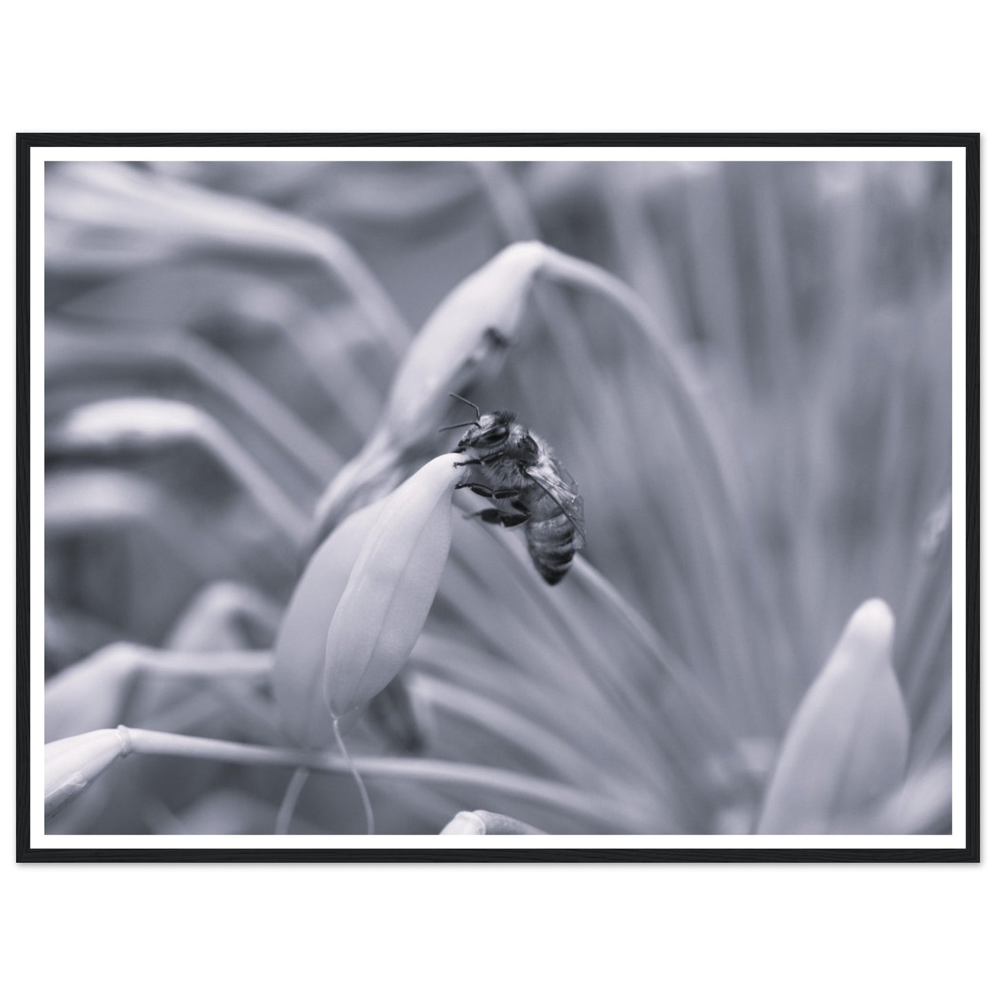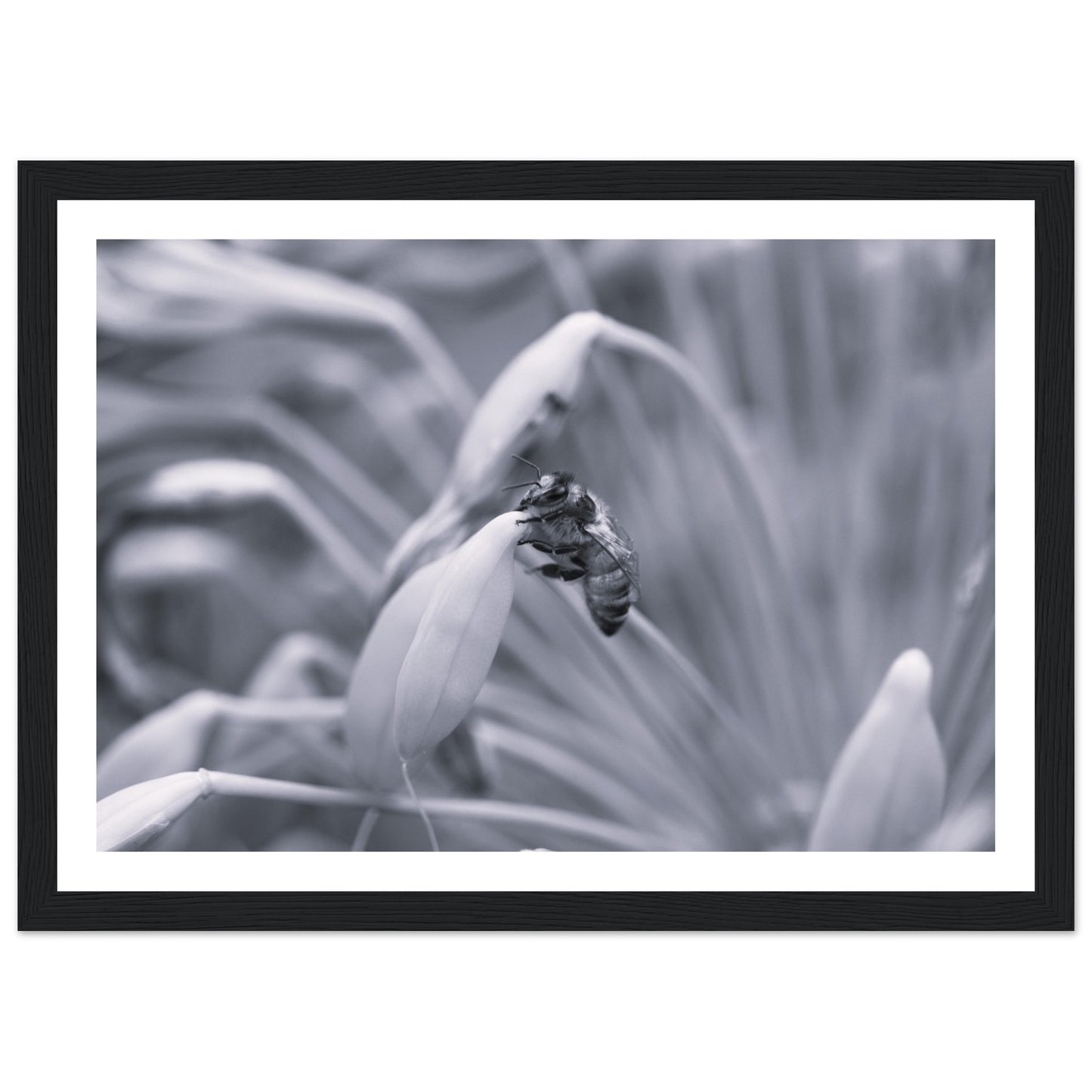 Bee in summer garden - Black & White - Premium matte paper poster with wooden frame