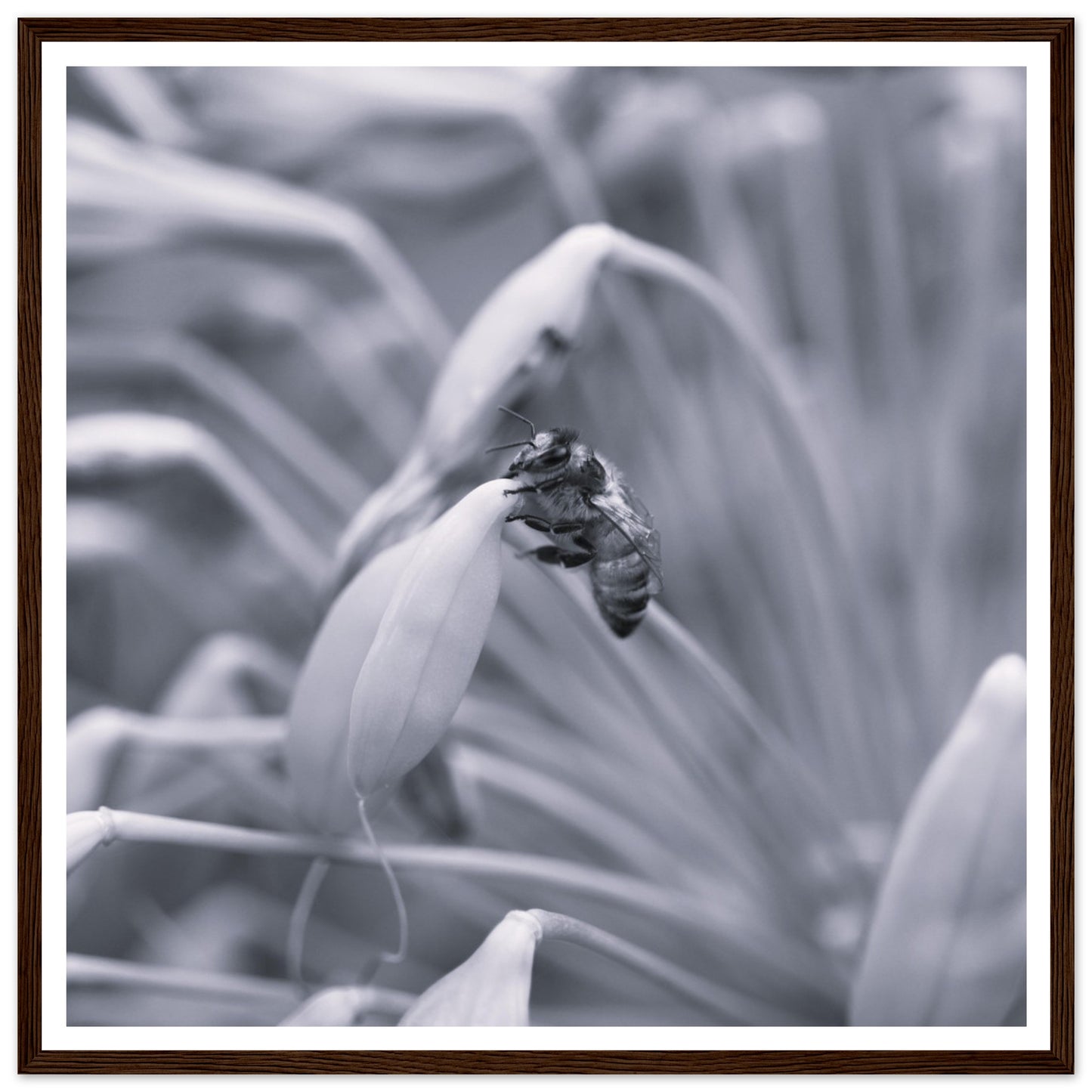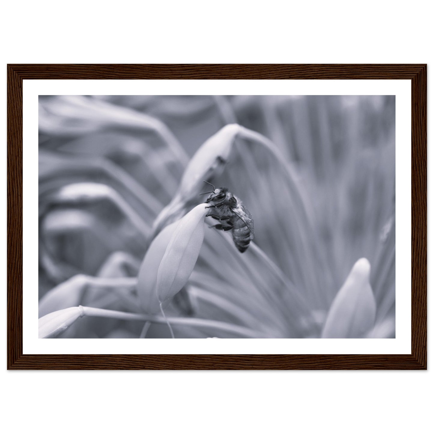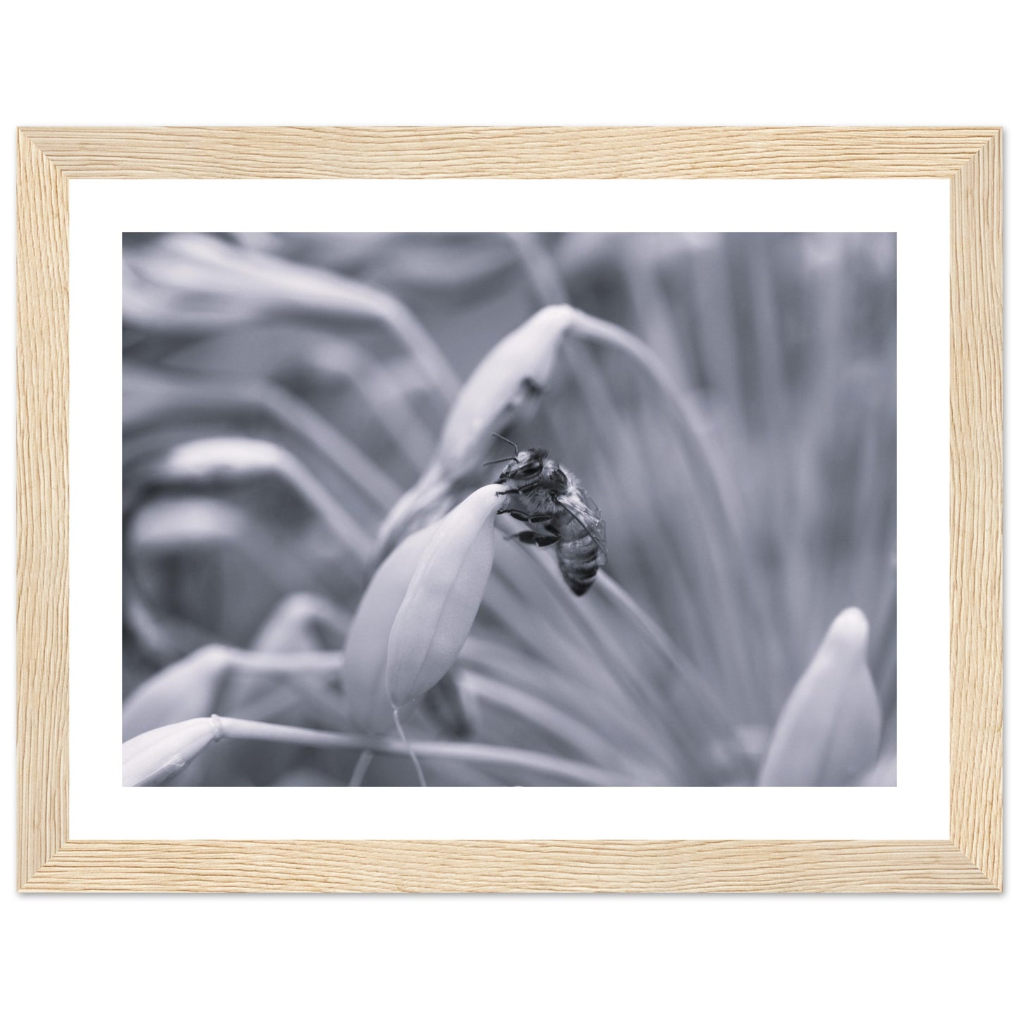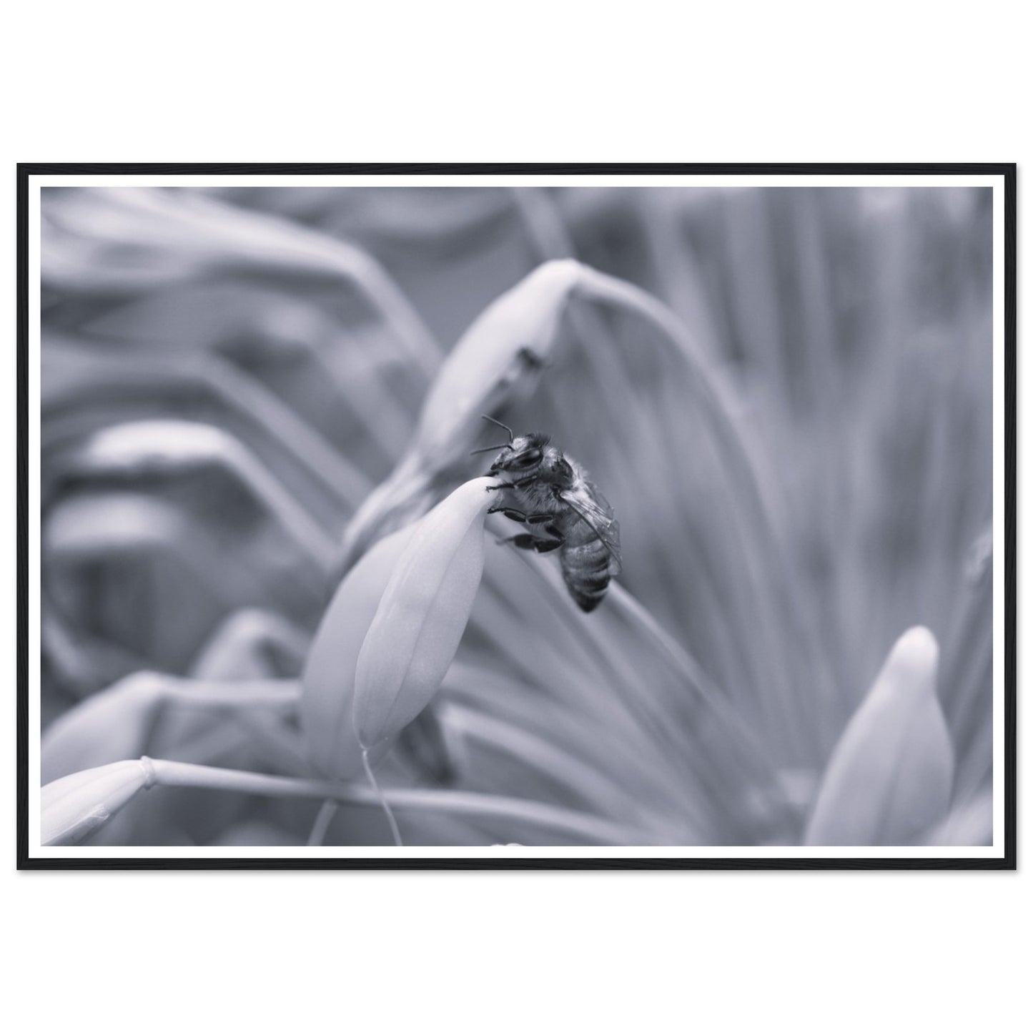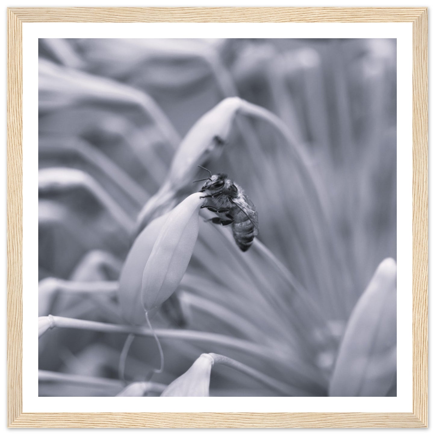 Bee in summer garden - Black & White - Premium matte paper poster with wooden frame